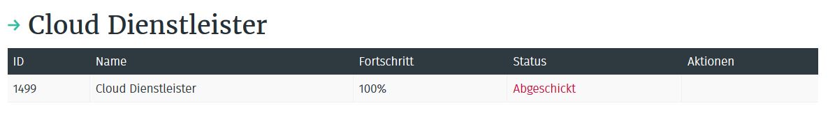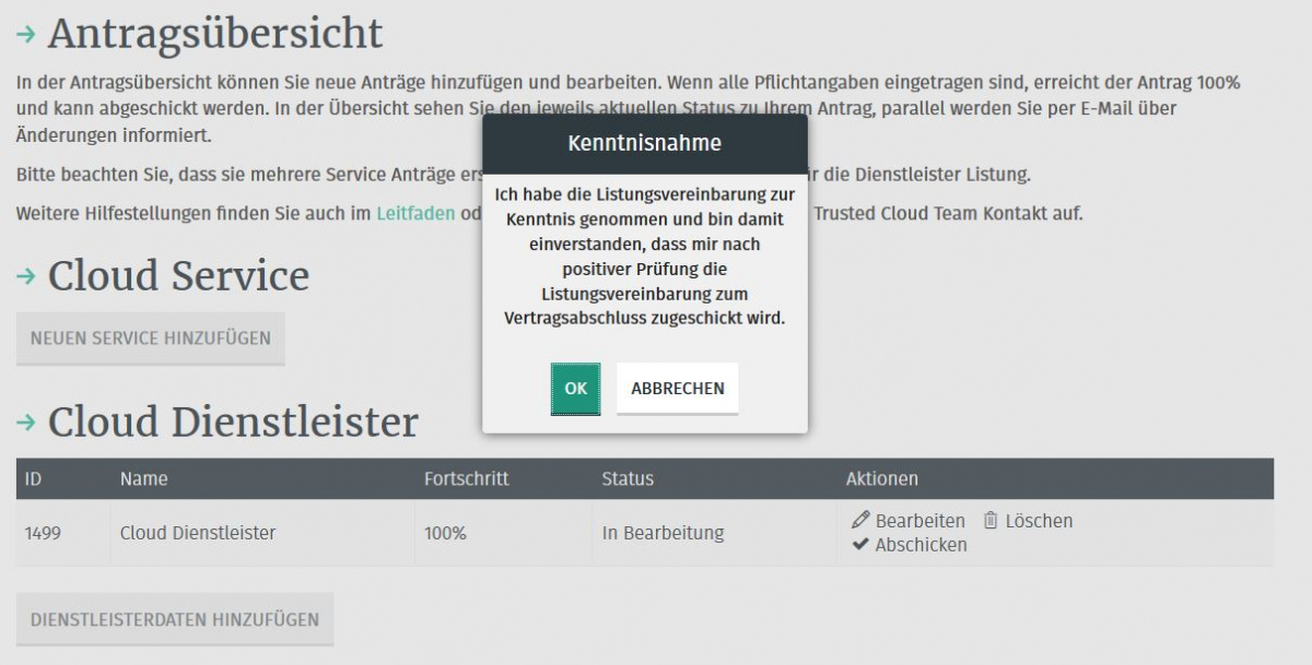 Bitte beachten Sie, dass Sie nur einen Antrag für die Listung als Anbieter von Cloud-bezogenen Dienstleistungen anlegen können.